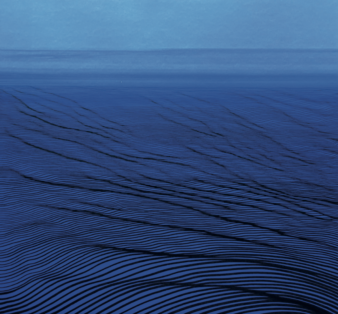 Luis Marques, artiste et architecte, présente une exposition où il explore son rapport intime à l’eau. Par la répétition de la ligne ou à travers les mots, il construit un voyage introspectif, avant d’inviter les visiteurs à une immersion contemplative. Ses paysages abstraits évoquent tour à tour le lac Léman et l’océan Atlantique aperçu depuis le Portugal, son pays d’origine. L’artiste y intègre également ses propres textes écrits durant l’adolescence, comme un retour aux sources, un dialogue personnel sensible. Il puise son inspiration dans la profondeur du bleu, dans la surface mouvante de l’eau et dans ce subtil ballet de nuances offert par la nature. De là, il construit un répertoire ou le trait devient migration, et la mémoire devient dessin. Il propose ainsi une vision à vol d’oiseau, mais aussi un voyage au cœur d’une topographie humaine et émotionnelle.